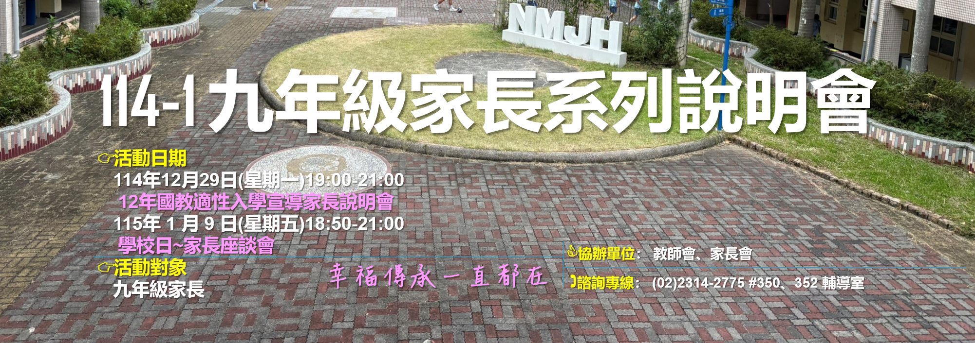 | 2025-11-27 | 轉知115學年度臺北市私立新民高中高中部學校簡介暨課程說明會 | 升學資訊 | 註冊組 | 67 |