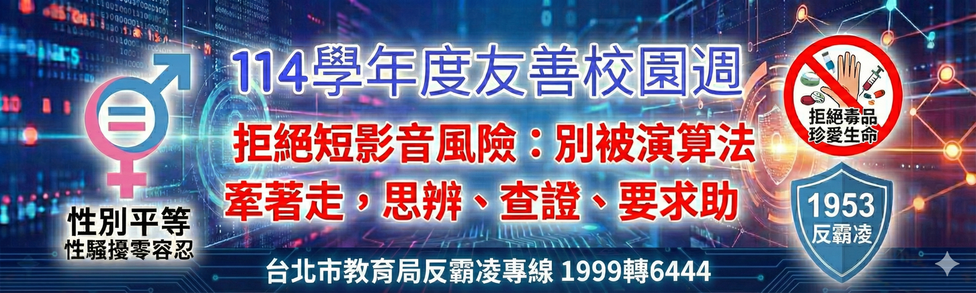 | 2026-03-04 | 轉知「臺北市115年度國民中學職涯導航計畫」及「α世代科技職涯攻略—臺北市新興產業職涯導航手冊」 |