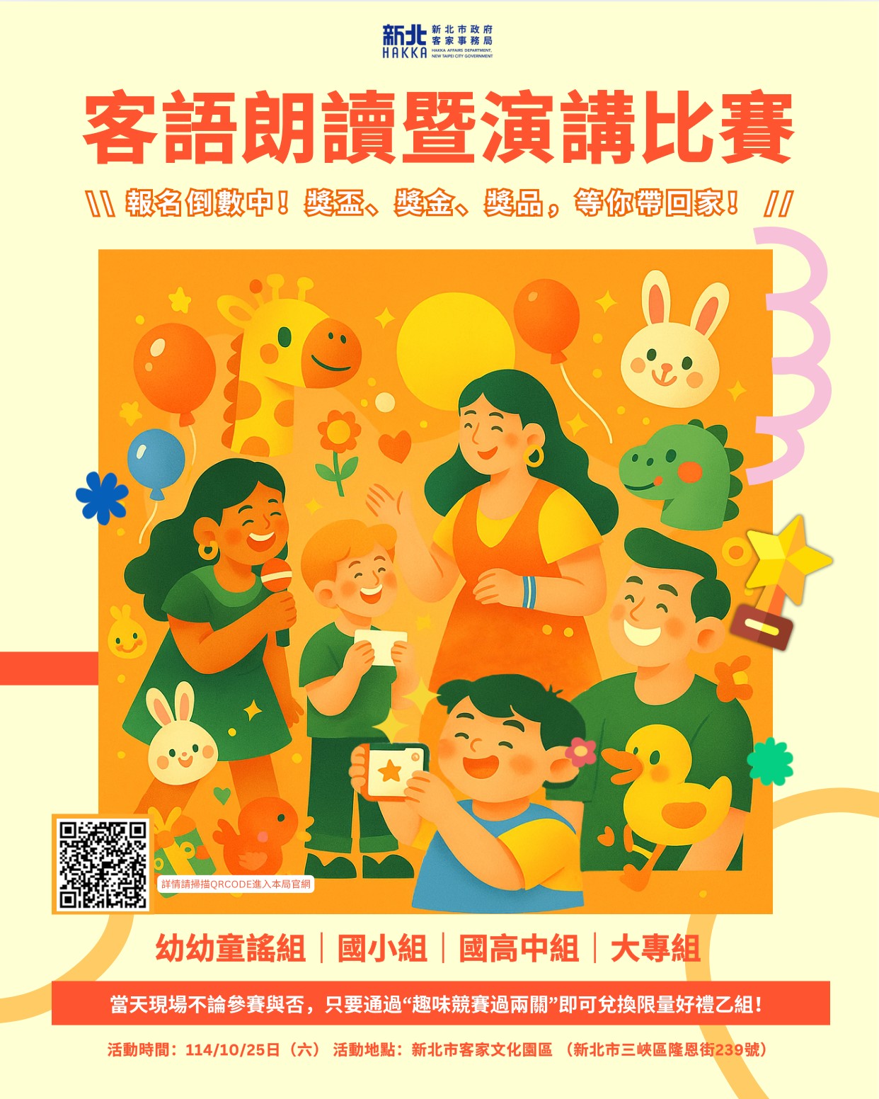 | 公告主旨 | 新北市政府客家事務局「114年客語母語朗讀暨演講比賽」 |