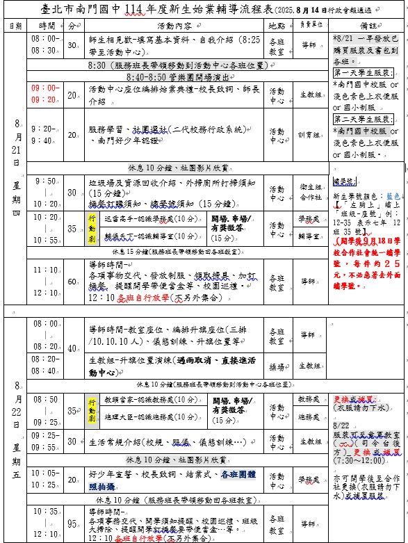 最新消息 公告主旨 114新生始業輔導流程表(8/21.8/22兩天上午) 發佈日期 2025 年 8 月 15 日 發佈單位 公告類別 校務行政, 新生專區, 註冊組 公告等級 無 點閱次數 117 公告內容 114新生始業輔導流程表(8/21.8/22兩天上午) 相關附件 【2025-08-15】【人事室】本校114學年度第1學期第3次代理教師甄選第16次招考公 ... 【2025-08-15】【人事室】本校114學年度第1學期第3次代理教師甄選第15次招考結 ...