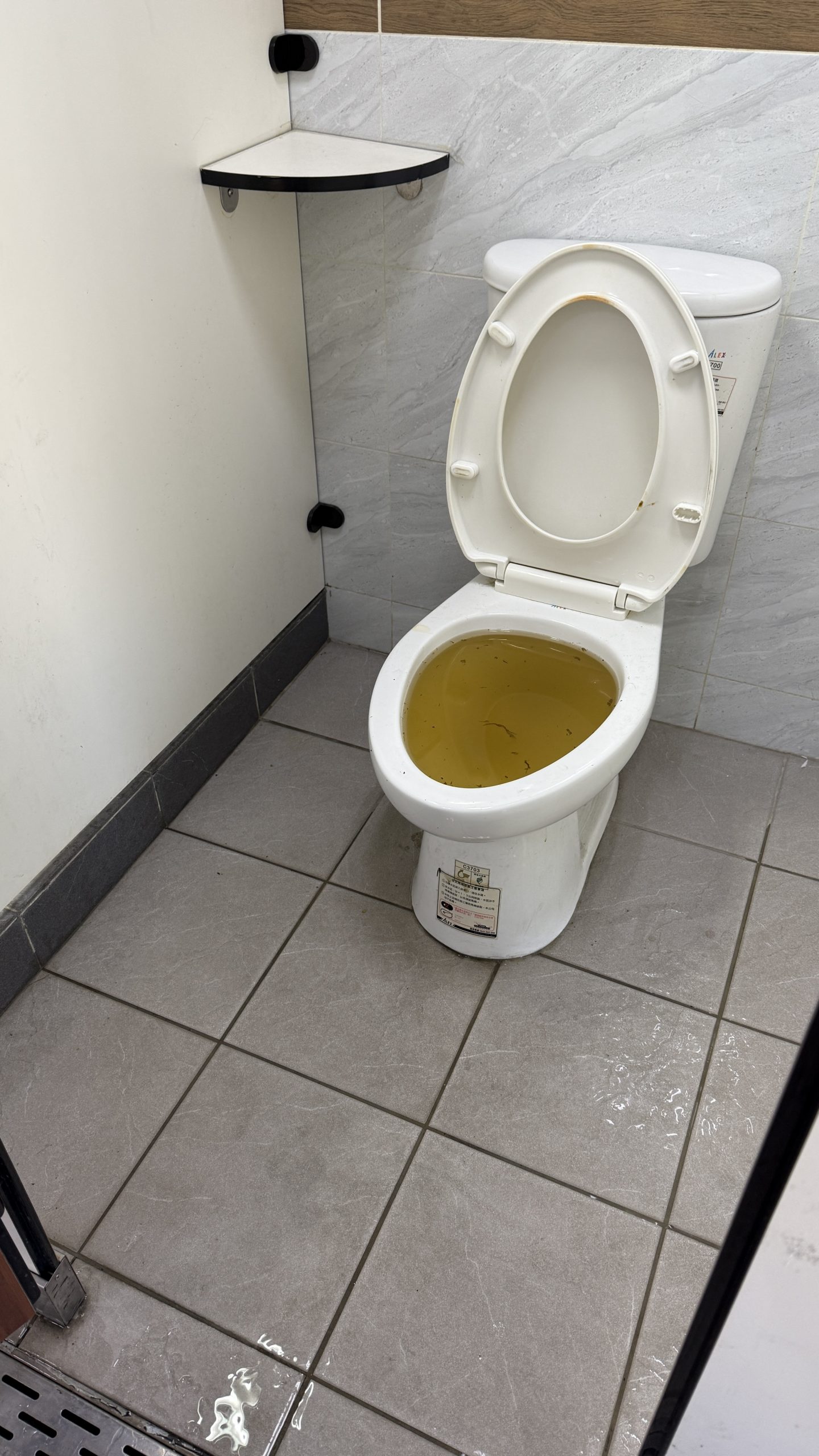 男廁第一間堵住了