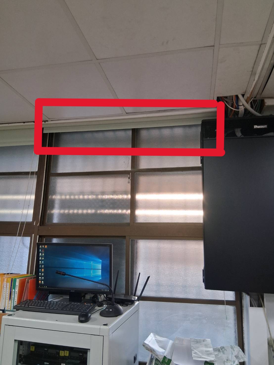輔導室的窗簾因長期使用,部分拉繩與固定裝置已出現磨損與脫落情形,導致窗簾無法拉下。