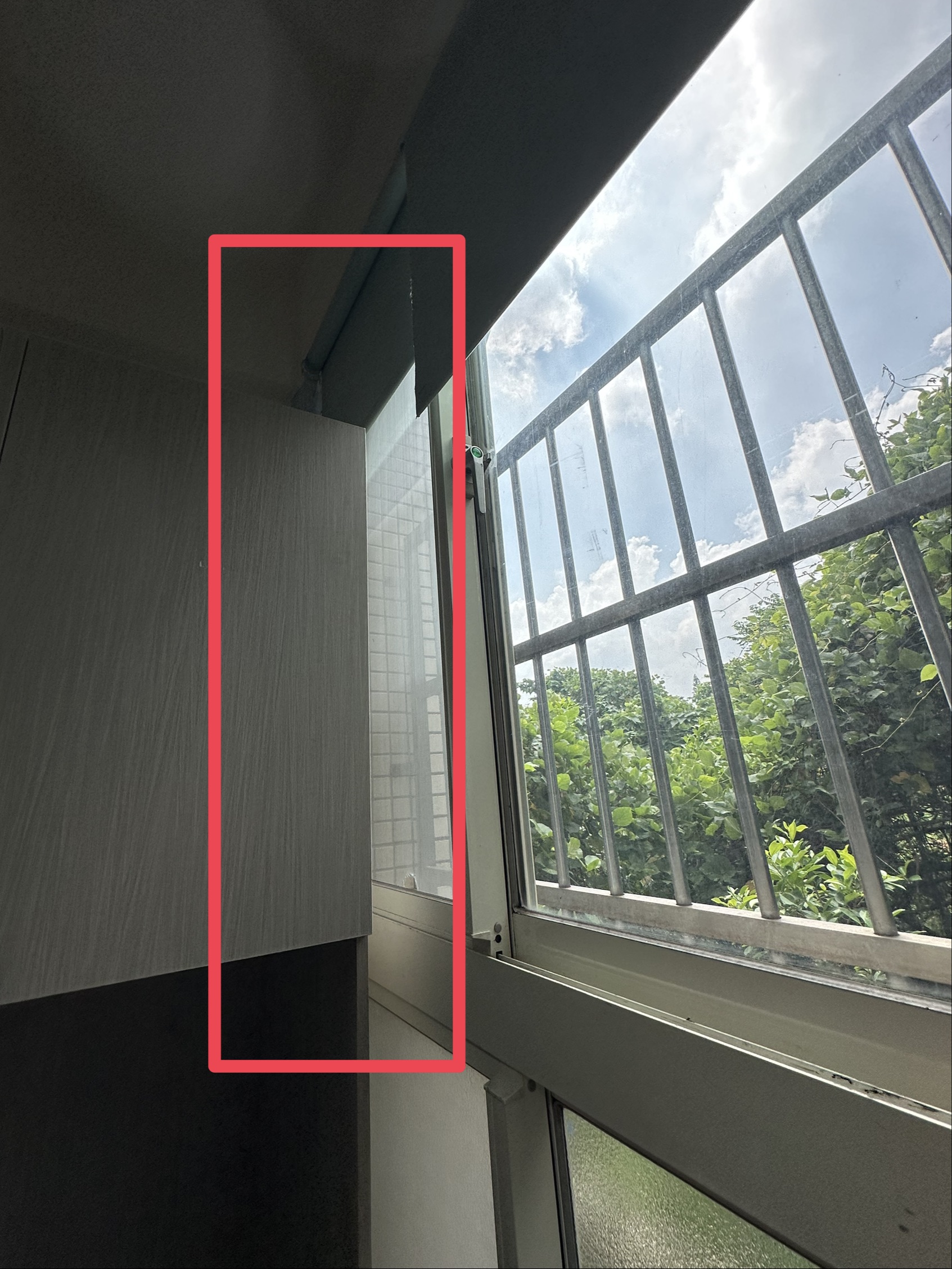 靠近後櫃的窗戶(教室最內側最後方)捲簾損壞,無法拉下來